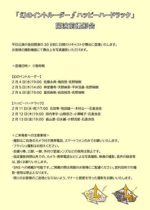 sitcomLab「ハッピーハードラック」【開演前撮影会】登壇決定!